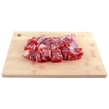 It typically includes cuts from the shoulder or leg of the goat. These cuts are often bone-in and have some fat and connective tissue, which contribute to the richness and depth of flavor in the stew.