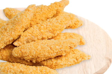 Tender chicken breast or thigh is sliced into strips, seasoned, coated with breadcrumbs, and lightly cooked before being frozen, ensuring convenient and flavorful chicken fingers ready to enjoy anytime.