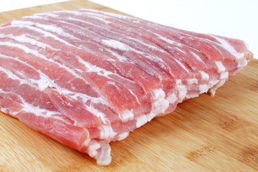 Made from pork belly, which is a fatty and flavorful cut of meat obtained from the underside of the pig. It consists of layers of meat and fat, which contribute to its rich taste and tender texture when cooked.